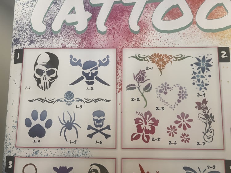Bring excitement to any event with our vibrant airbrush tattoos! Using high-quality, skin-safe paints, we apply eye-catching designs from our wide selection of stencils, think fierce dragons, sparkling stars, playful animals, and more. Quick to apply, painless, and safe for all ages, these temporary tattoos last up to a week, so the fun doesn’t end when the party does! Perfect for kids, teens, and adults who want a pop of color and personality that sticks around.