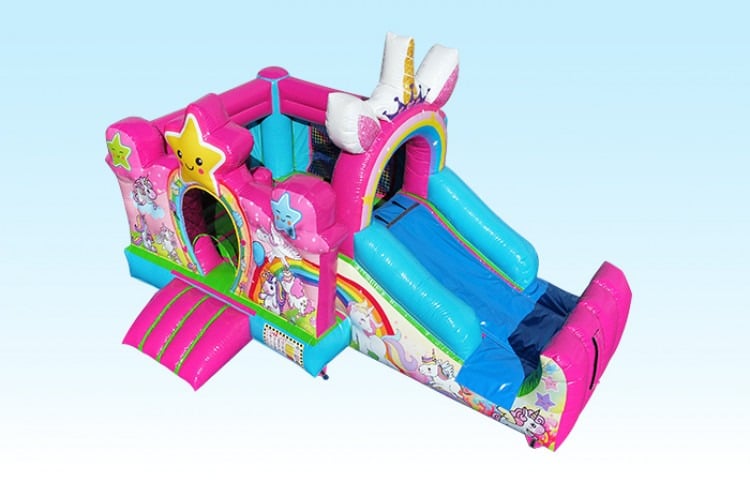 It's colorful! It's pink! Our unicorn mini combo is perfect for any gathering. Full of vibrant unicorn rainbow and pink colors kids will love. Perfect compact size for smaller spaces and definitely lots of fun. Fun jumping and sliding for all kids to enjoy.