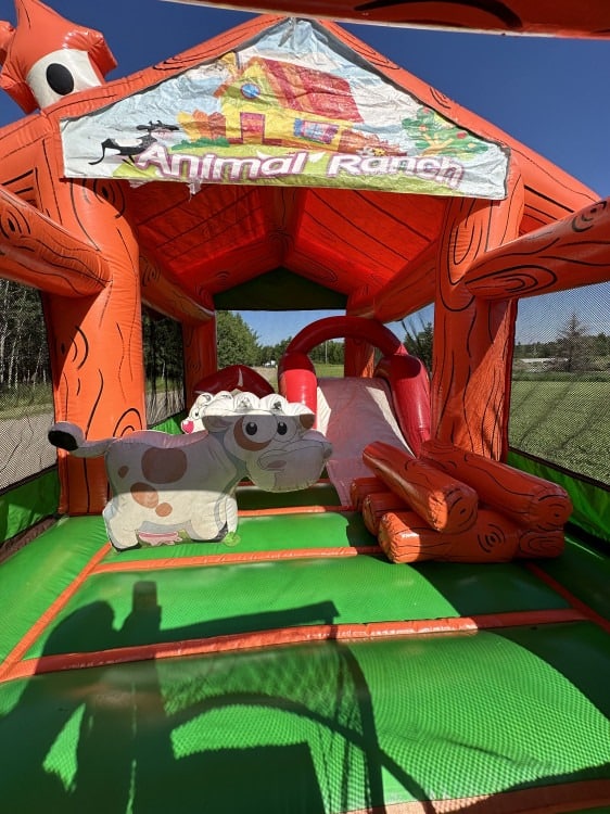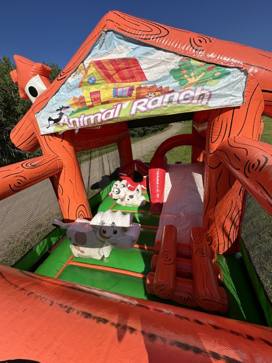 Step right up and dive into the ultimate adventure with our Petting Zoo themed bouncy castle, designed specifically for kids under 10! Imagine the joy on their faces as they bounce among friendly, cartoon-style animals like cuddly sheep, funny cow and even a little bon fire. This inflatable wonderland transforms any event into a magical experience where children can safely jump, slide, and explore in a whimsical setting. Perfect for birthday parties, school events, or any gathering, our Petting Zoo bouncy castle promises hours of laughter and unforgettable memories. Give your little ones the thrill of a lifetime with this delightful attraction that combines imagination, exercise, and pure, unbridled fun!