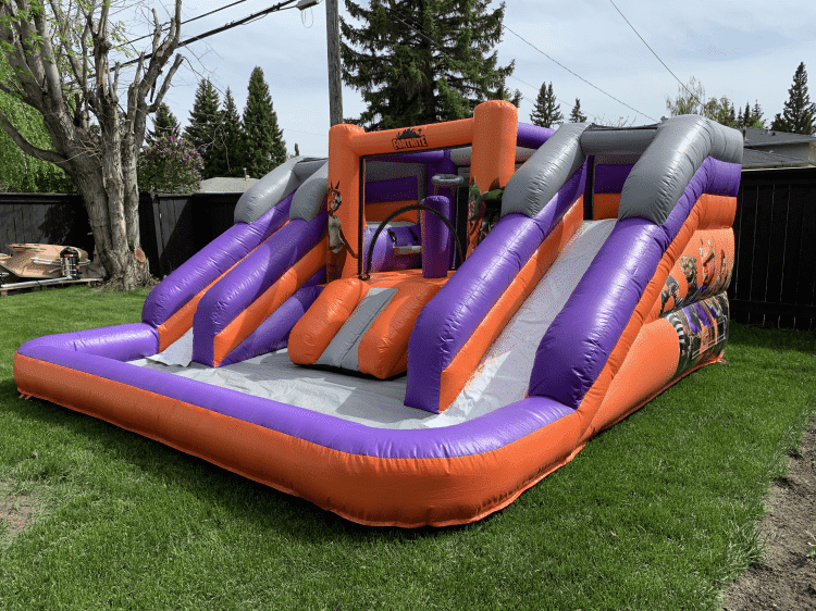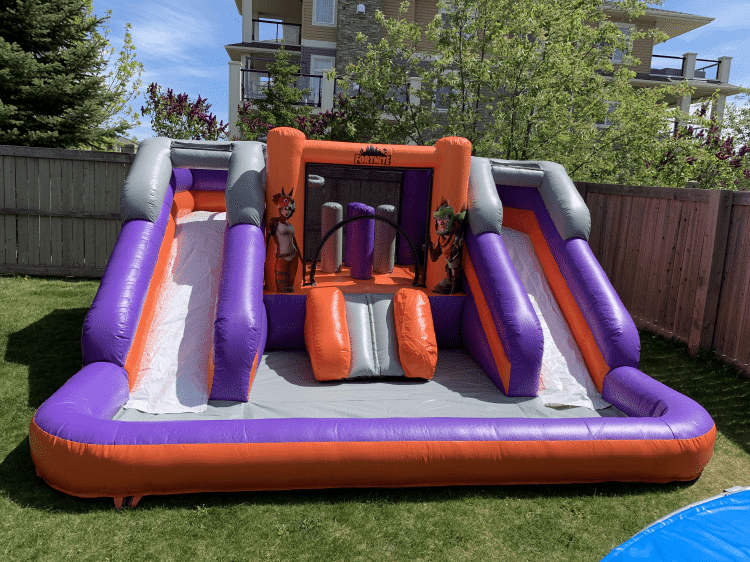 #35 amazing FORTNITE bouncy castle combo with TWO slides on each side, obstacles in the middle, bouncing area as well as a small climbing on each side.