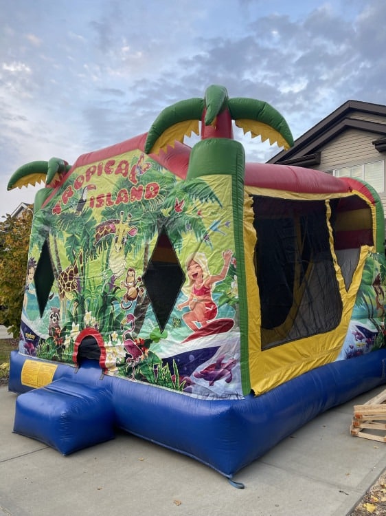 Who doesn’t love being on a tropical island? Well now it’s time to let your little ones know how nice it is to be on this kind of island with the #78 Tropical Island combo 6 in 1. One of the most beautiful designs there is out there and with  its MASSIVE bouncing area of over 14’x19’, basketball hoop, 10’ climbing wall and 12’ slide, there’s no better ways to celebrate a birthday or celebrate a day that you’re not soon to forget.